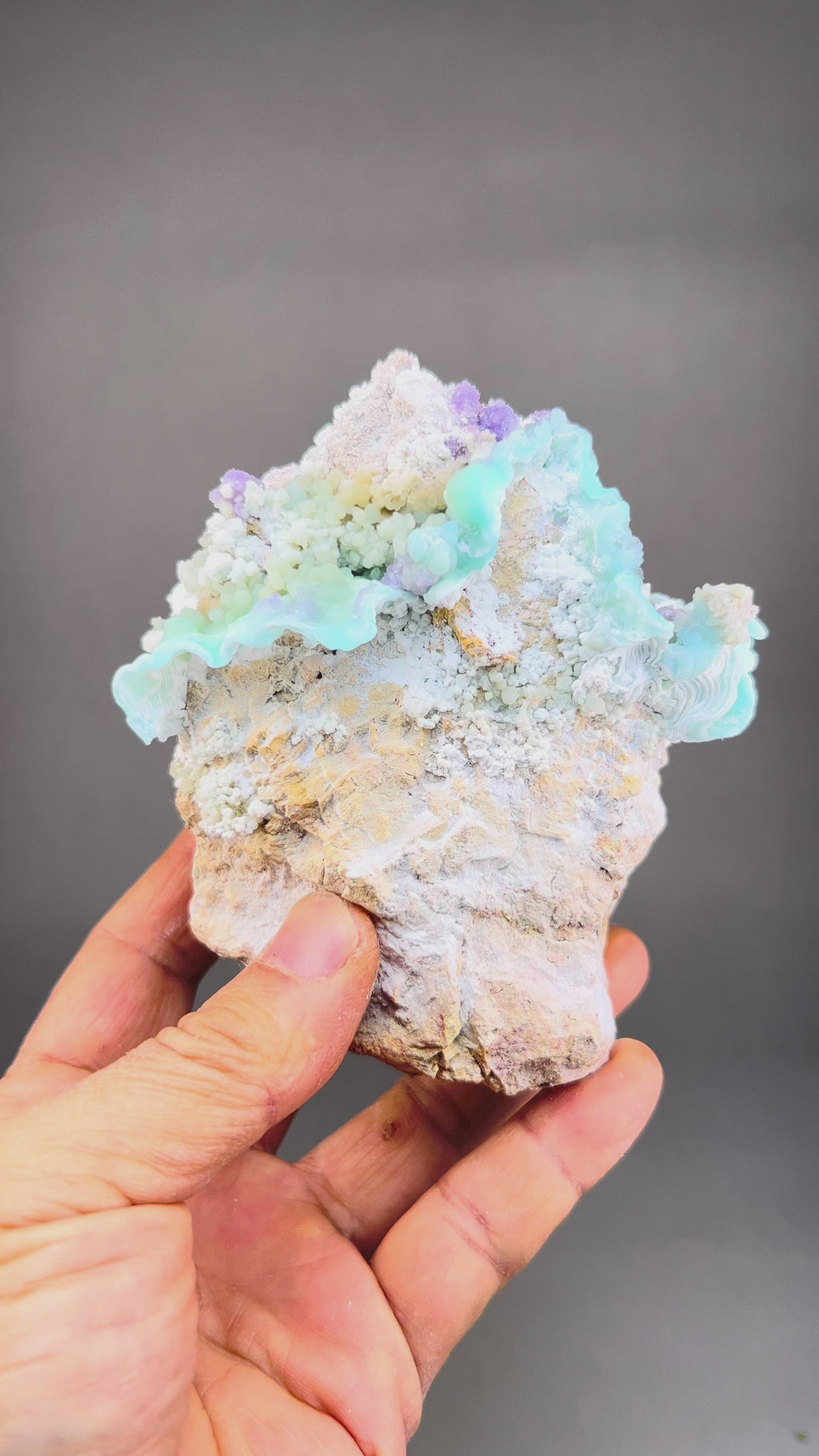 Tiffany-blue Gibbsite with Purple creedite from Qinglong Mine(Dachang Mine), Dachang Sb ore field, Qinglong County, Qianxinan, Guizhou, China.