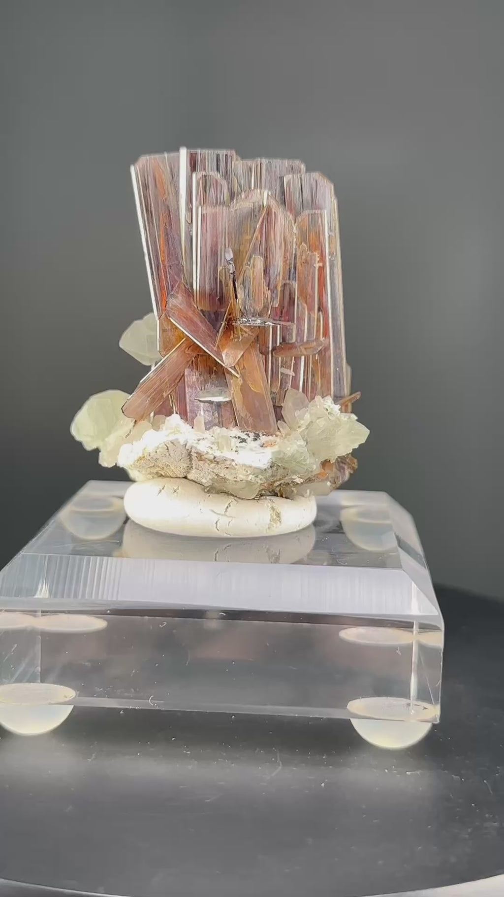 ◦ The crystals exhibit a classic tabular/bladed morphology with clear orthorhombic structure, smooth and well-defined faces, sharp edges, and fine longitudinal striations that lend a sophisticated texture.