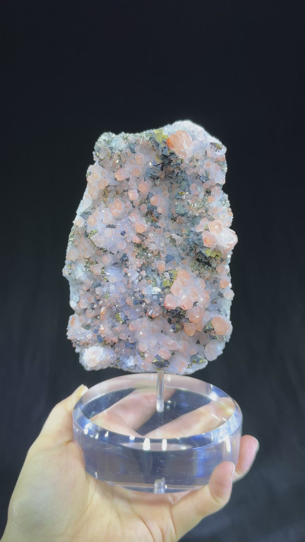 Red quartz with chalcopyrite and sphalerite with customized base