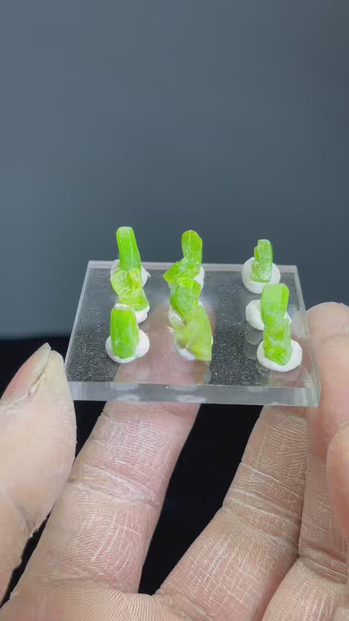 9 single crystals on panel,Pyromorphite, from Daoping Guilin Guangxi China