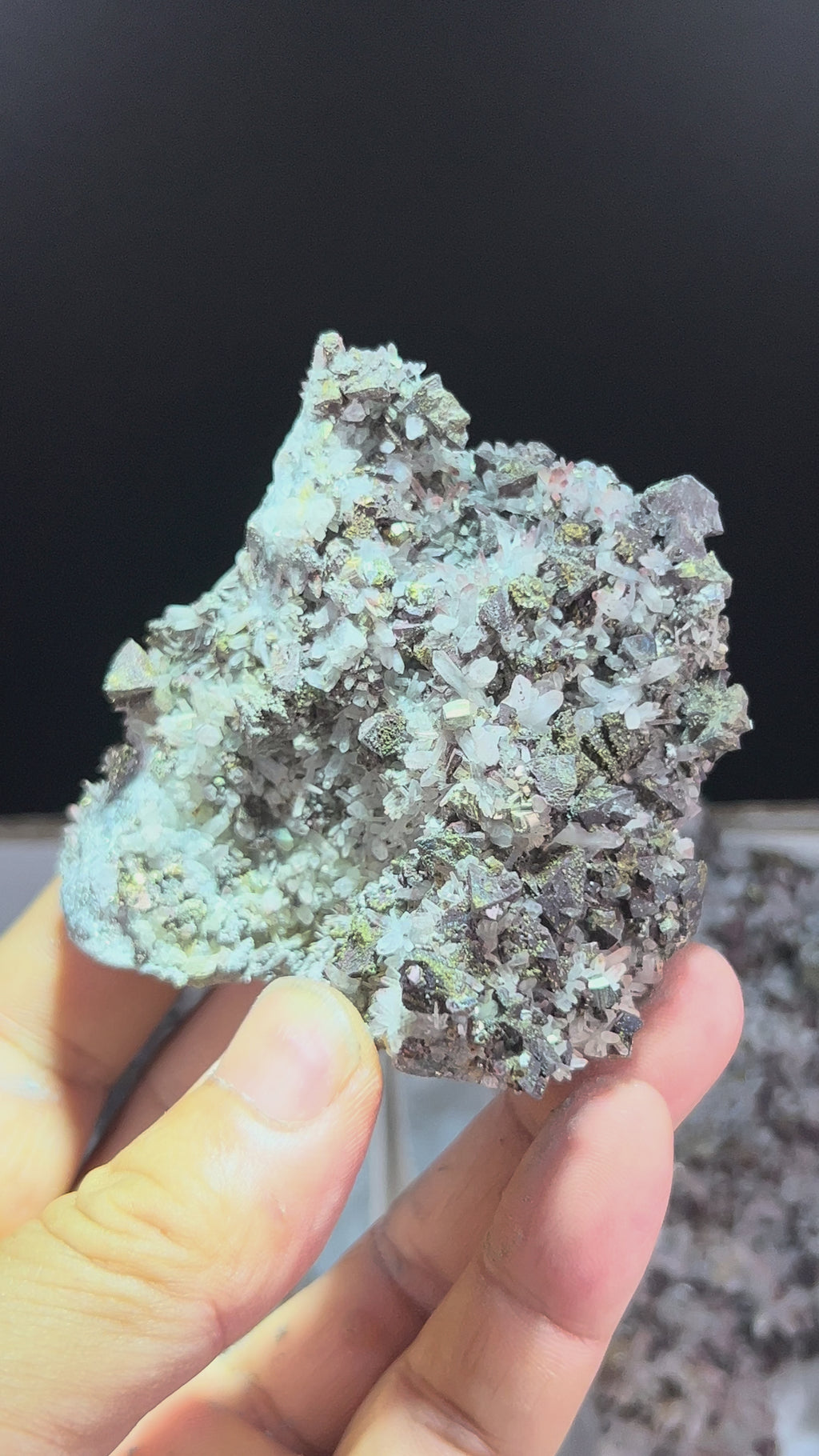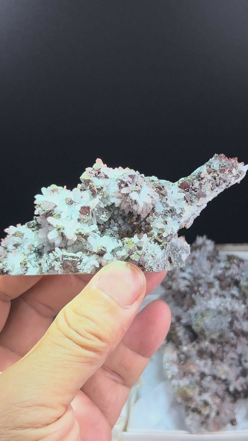 Chalcopyrite, pyrite, and galena grow on red quartz druseDongxiang copper mine,Jiangxi Province China