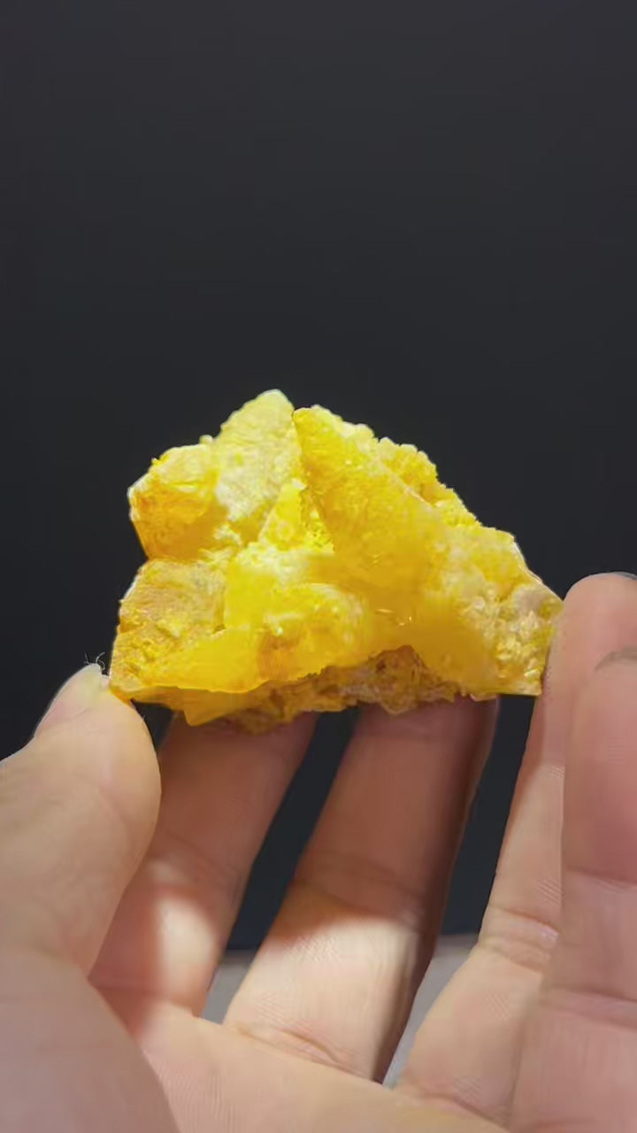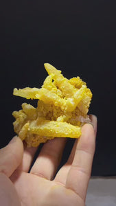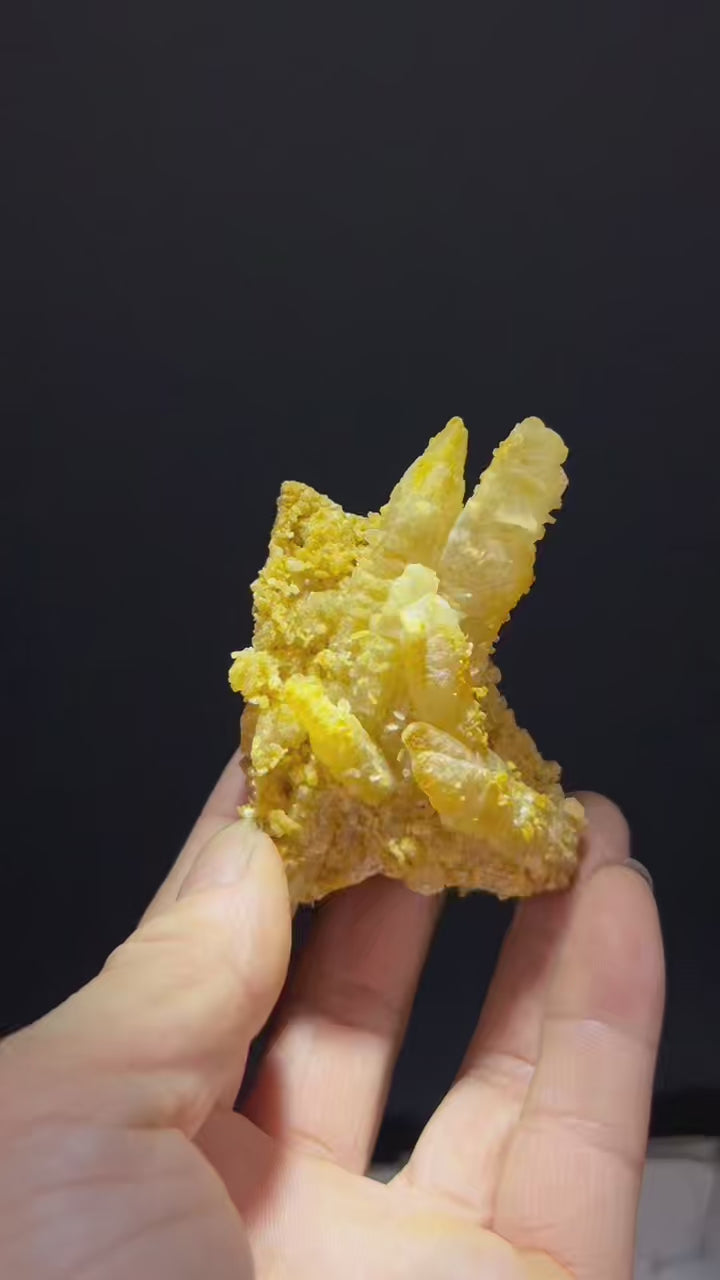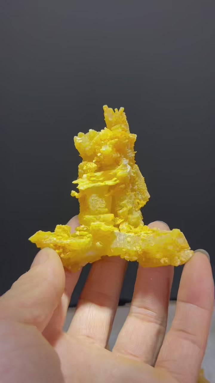 Tower of Babel Aragonite,Newly found bright yellow Aragonite, an interesting specimen from Manaoshan Hunan Province China. with small flakes and needles growing on the columnar crystals.